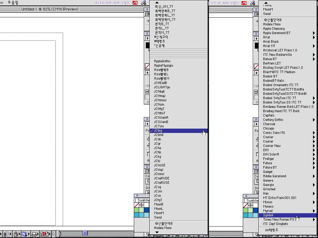 일러스트하고쿽포토샵까지서체인식이안돼요