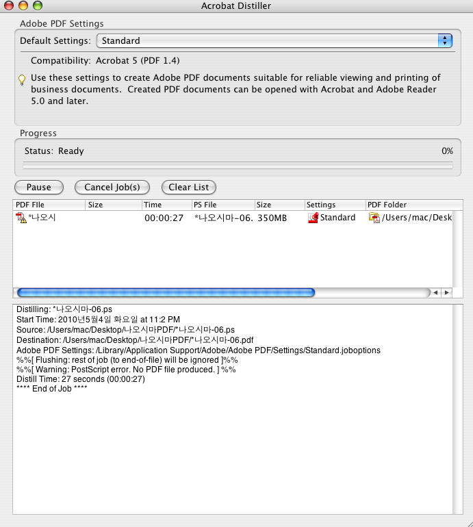 쿼억 3.3 에서 PS파일로 저장하여 아크로벳디스틸러에서