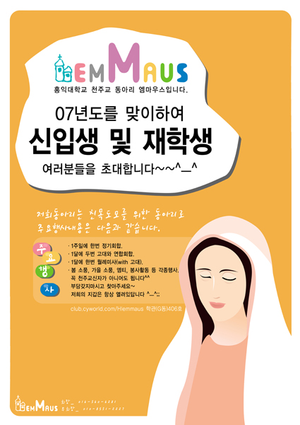 홍대 천주교 동아리 엠마우스포스터입니다.
