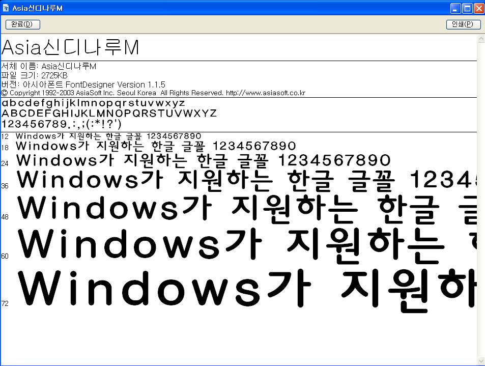 아시아신다나루서체모양이 어떻게 생겼나요?