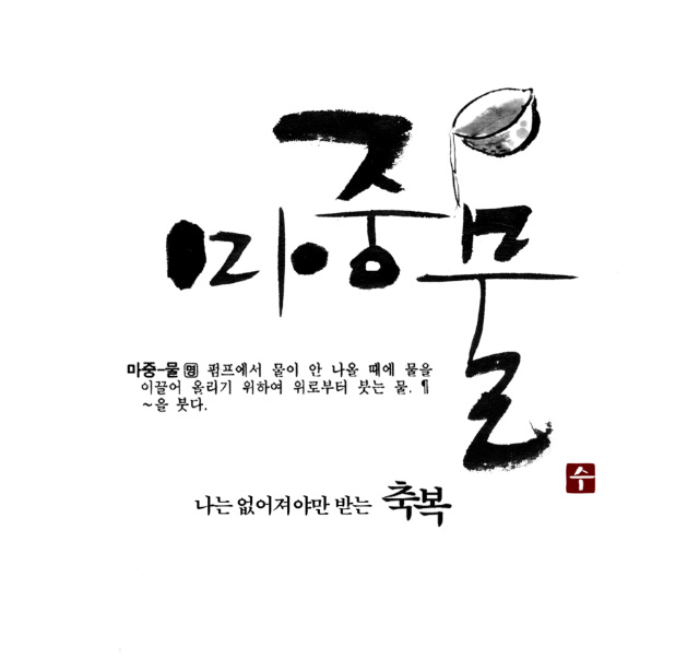 예인님 저도 캘리 부탁드려도 될까요? zenith 일반 0 5738 2009.05.11 23:19 매번 보기만 하다가 용기내서 초면에 부탁드립니다. 지역에 조그만 어머니 모임 명함에 들어갈 로고체구요 작지만 의미있는 모임이라 이쁘게 만들어 드리고 싶어서요. "마중맘"이라고 써주시면 될것 같습니다 마중물이란 순우리말에서 만드셨다고 하네요 샘플 하나 올려드리겠습니다 부탁드립니다
