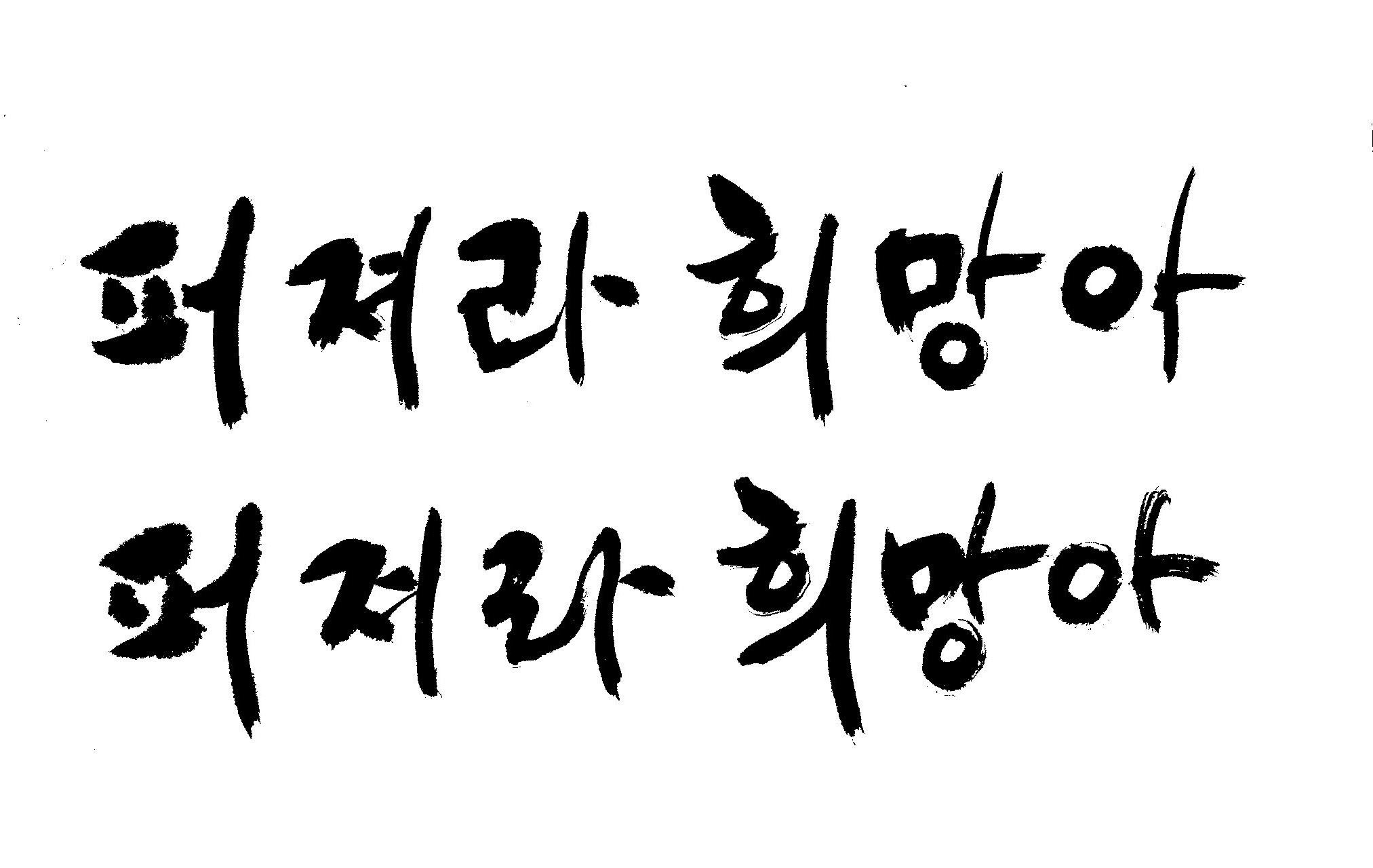 캘리 부탁드립니다 김철호 일반 0 7478 2009.02.16 14:30 > > > > > 안녕하세요 > > > > 캘리 부탁을 좀 드리려는데요. > > 문구는 '퍼져라 희망아' 입니다. > > > > 광고 시안으로 사용할 것이고 약간 강한 느낌이었으면 좋겠습니다. > > > > 많은 분들 도움 부탁드립니다 ^-^ > > >