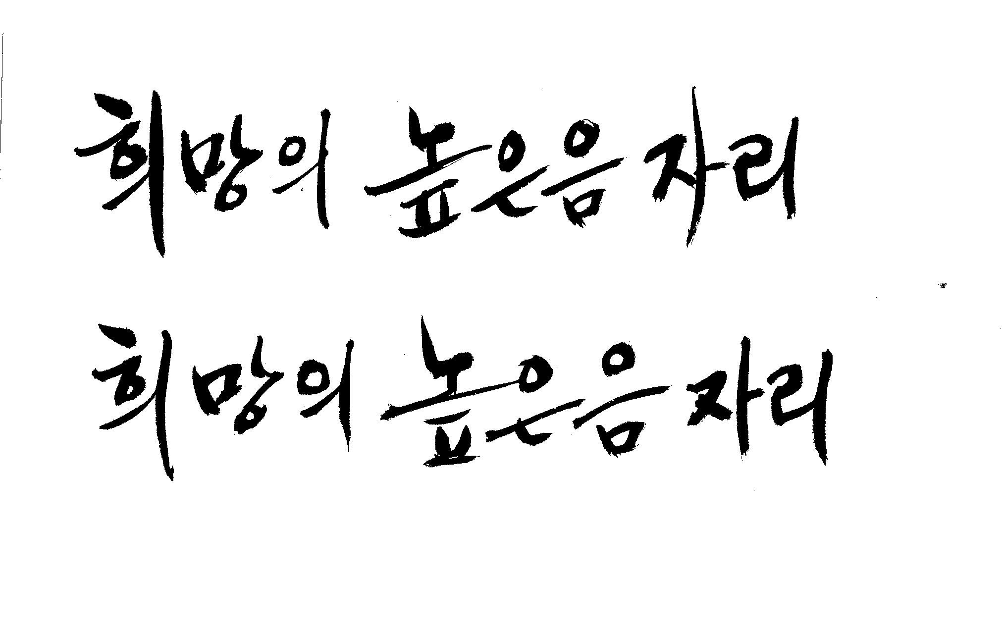 저도 캘리좀부탁이요 ^^;; 김철호 일반 0 6813 2009.01.14 10:59 > > > > > 희망의 높은음자리 > > > > 감사합니다 ^^ 꼭부탁드려욧 ㅎㅎㅎ > > > > 좋은 글이라서 신경썼는데 > 만족할 만큼 않나왔네요.. > 유용하게 쓰시길... >