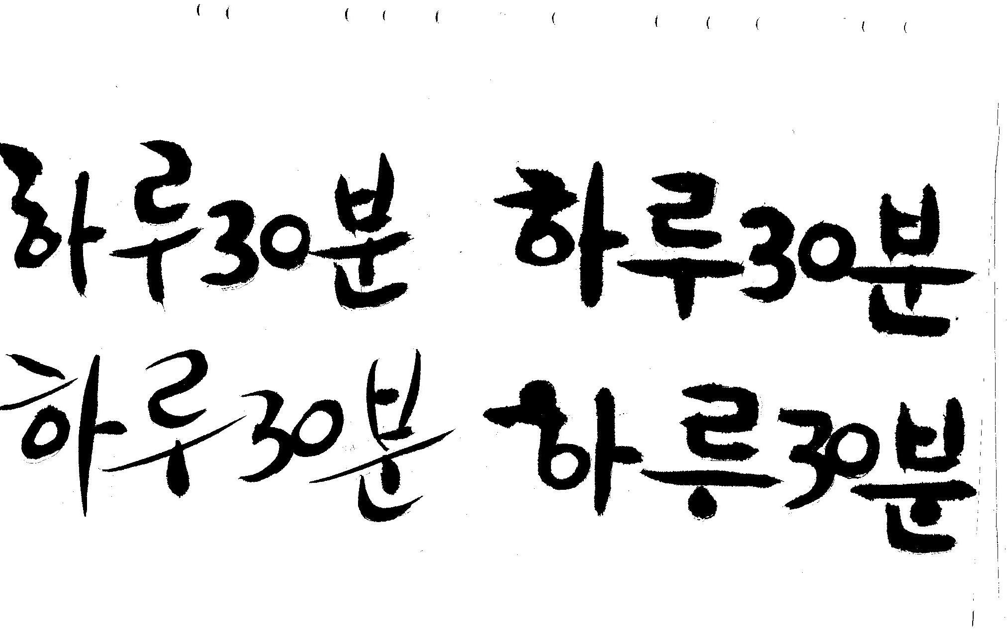 캘리부탁드려요 김철호 일반 0 6779 2008.12.31 13:43 > > 하루30분 <------- 이걸 캘리로 부탁드립니다 > 희망찬 새해 되세요... 스캔이 삐딱하게 되어 손좀 보셔야겠네요..