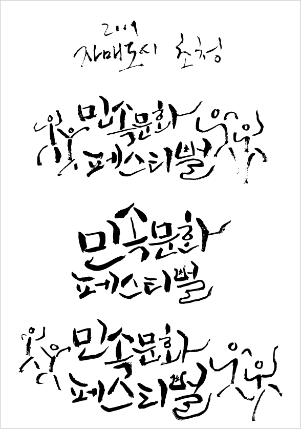 감사합니다. 멋진 캘리가 나온것 같아서 너무 감사드립니다. 무지 신선하고 재미있는것 같아요 근데 제가 찾고자하는 느낌과 조금 거리가 있는 듯 싶어서 한중일 민속문화 페스티벌은 토속적인 느낌과 전통적인 느낌이 스며있는 캘리를 찾고자 합니다. 말이 길죠^^;지송...;; 바쁘신데 이렇게 부탁을 들어주시고 또 제글을 읽어주셔서 넘 감사드립니당.