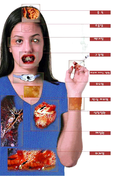 흡연하는 여성의 투시 사진